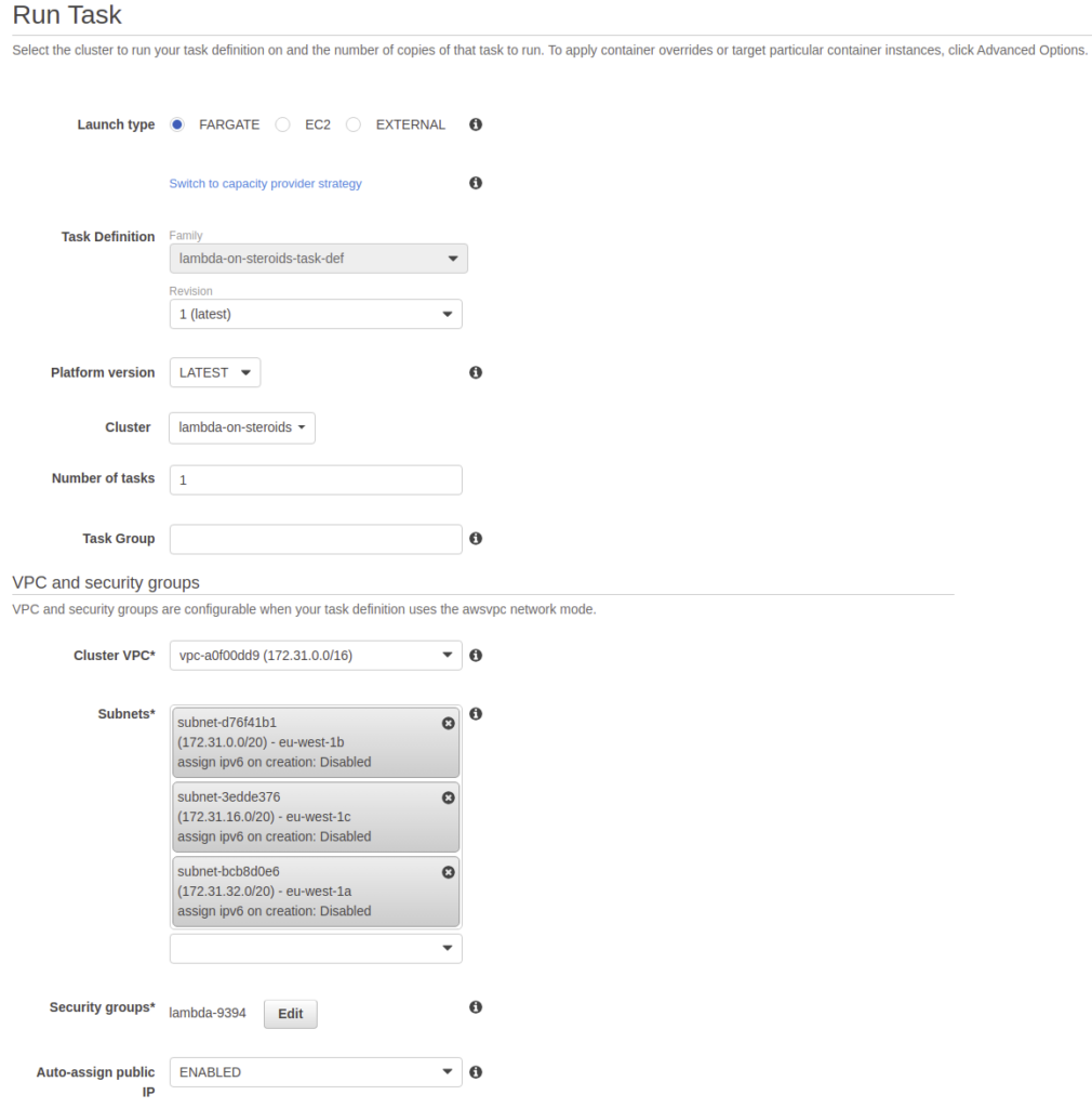Do you ever feel like AWS LAMBDA is great but they are just not enough for what you need to do? Maybe you need more horsepower, perhaps a core or two and maybe the TASK you want to do might not be done within 15 minutes? I know what you’re thinking; duh!