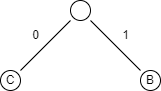Then you take the 2 lowest frequencies C(1) and B(2) and add a node on top of them with 0(left) and 1(right) as the path.