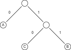 - Shorter codes lexicographically precede longer codes which means it shouldn’t happen in the above example that A has huffman code 1 and B has 01 and C has 00