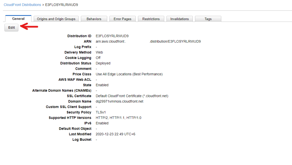 Go to the CloudFront distribution page and select Edit.