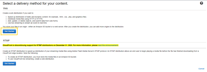 After that, it will take you to the delivery method selection page, where, as of the time of this post writing, you will be given two(2) options to choose from, one is Web, the other one is RTMP (which will be discontinued from December 31, 2020). We will be selecting the Web one.