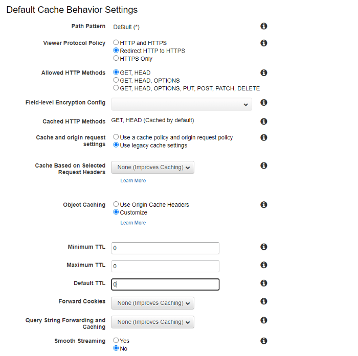 So let’s start customizing the Default Cache Behavior Settings.