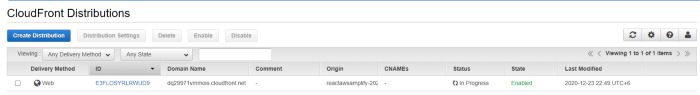 You will be taken to the CloudFront home page and you will find the distribution you just created.