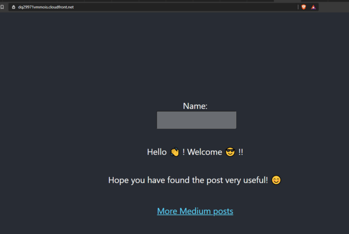 It takes some time for the distribution to be deployed for the first time. When it’s done, you will the Status as Deployed. When that is ready, you can copy the Domain Name and paste it in the browser and you will see it’s showing the website you hosted on the S3 bucket! So now you don’t have to remember the long S3 bucket hosting URL just to visit the website.