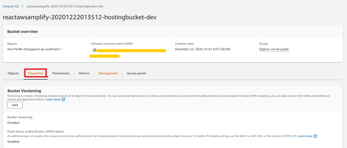 By this time, you might be wondering how the hell you will get the URL? Do you have to publish the project with AWS Amplify again just to get the URL? Well, don’t worry about that, you don’t have to go to such length. There is an easy and convenient way to get that. Just go into the S3 bucket, and select the Properties tab on the top.