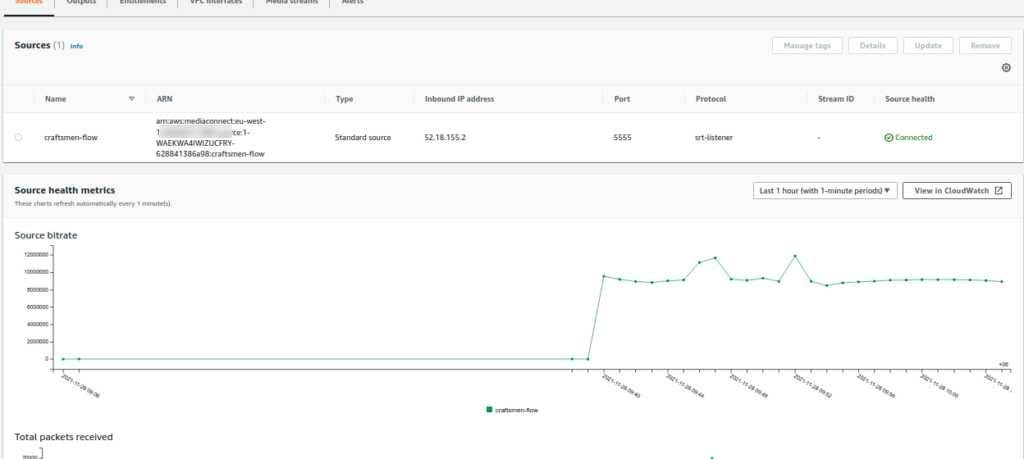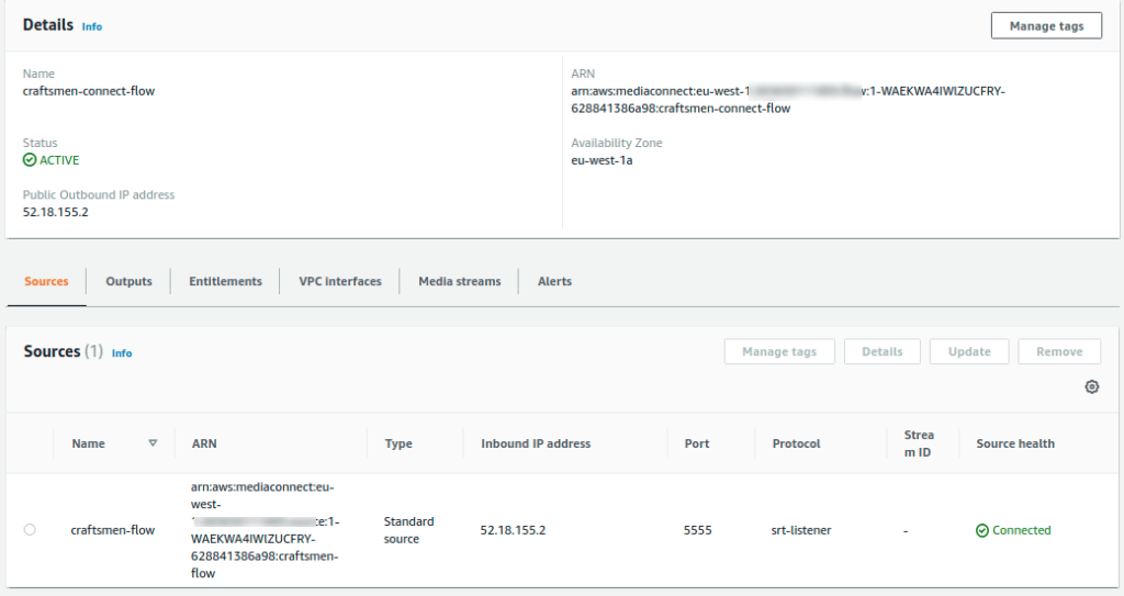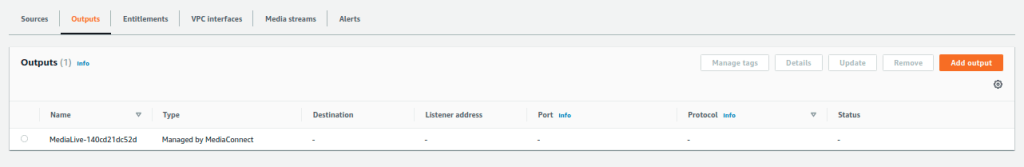 Now if we go to our MediaConnect and check output we will find a MediaLive output connected to our flow.