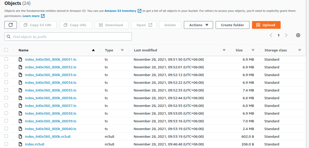We will see an index.m3u8 file, it’s a playlist file generated by Medialive in our s3 bucket. Now if we copy the object url of this m3u8 file and start a network stream in our VLC player.