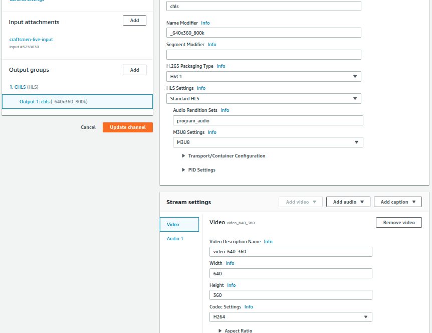 MediaLive Channel Output Setting