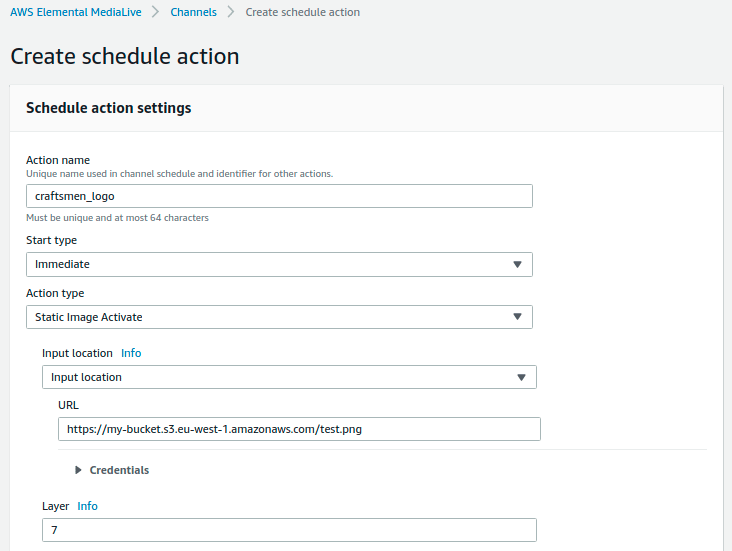 MediaLive Schedule Settings