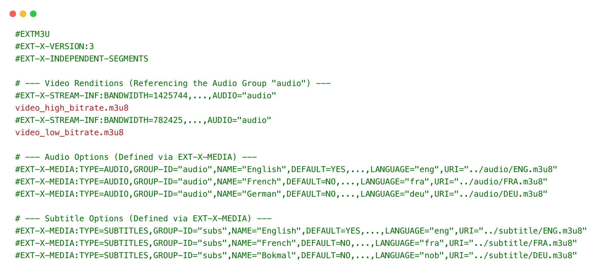 ../audio/ENG.m3u8correctly). - Language Tagging: Using consistent language codes (like ISO 639) and setting appropriate defaults for a smooth user experience.