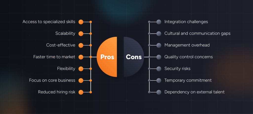 Knowledge transfer between the in-house and augmented teams may be incomplete or inefficient: